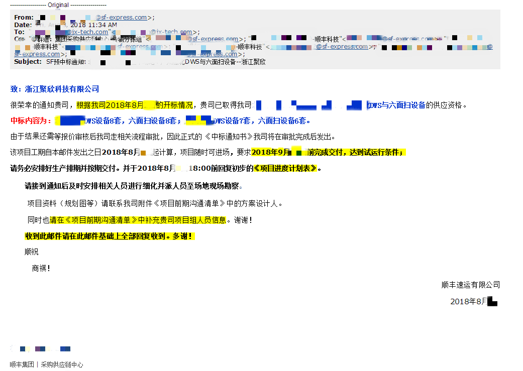 聚欣中標(biāo)順豐2018年北京和廣州最新項(xiàng)目,包括15套六面DWS和14套六面讀碼系統(tǒng)!